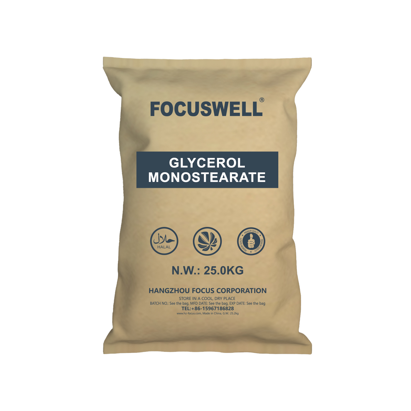 Glycerol monostearate is an ester of glycerol and stearic acid. It functions as an emulsifier, thickening agent, and stabilizer in foods such as whipped cream, baked goods, and ice cream. In cosmetics, it is used to improve texture and stability.